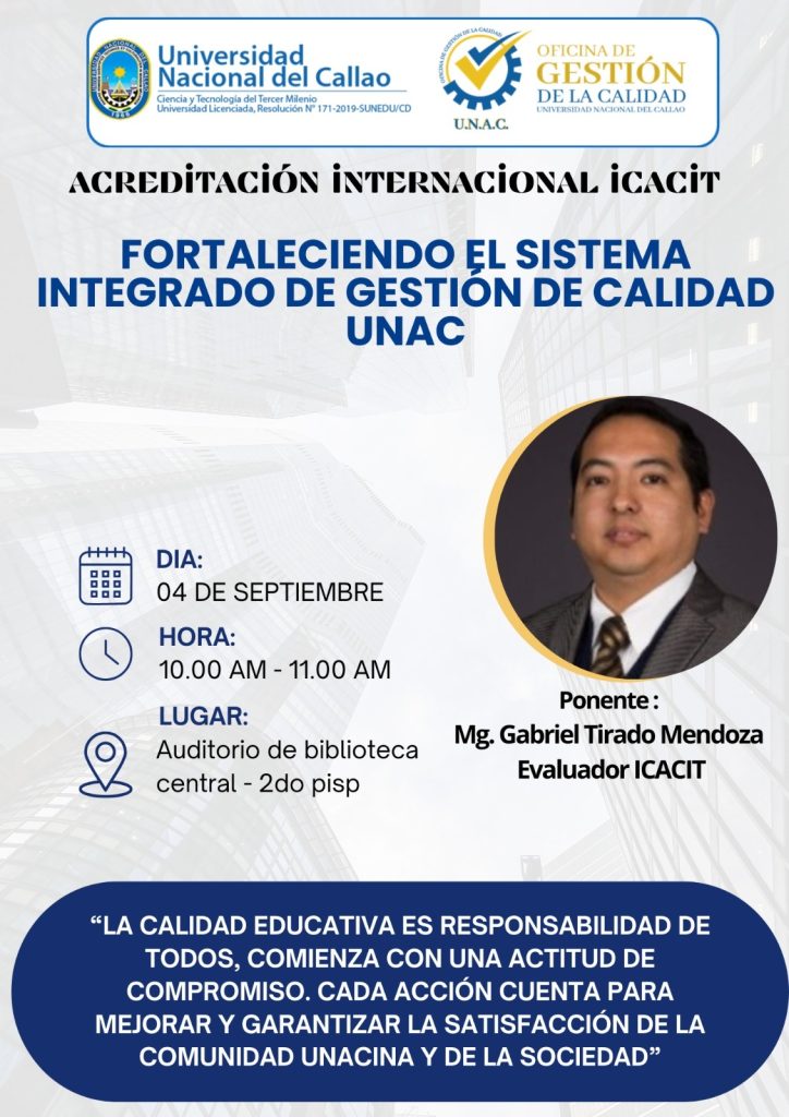 Posted on 25 de agosto de 2025 Relaciones Públicas UNAC Noticias Acreditación internacional ICACIT- Fortaleciendo el sistema integrado de gestión de calidad UNAC.