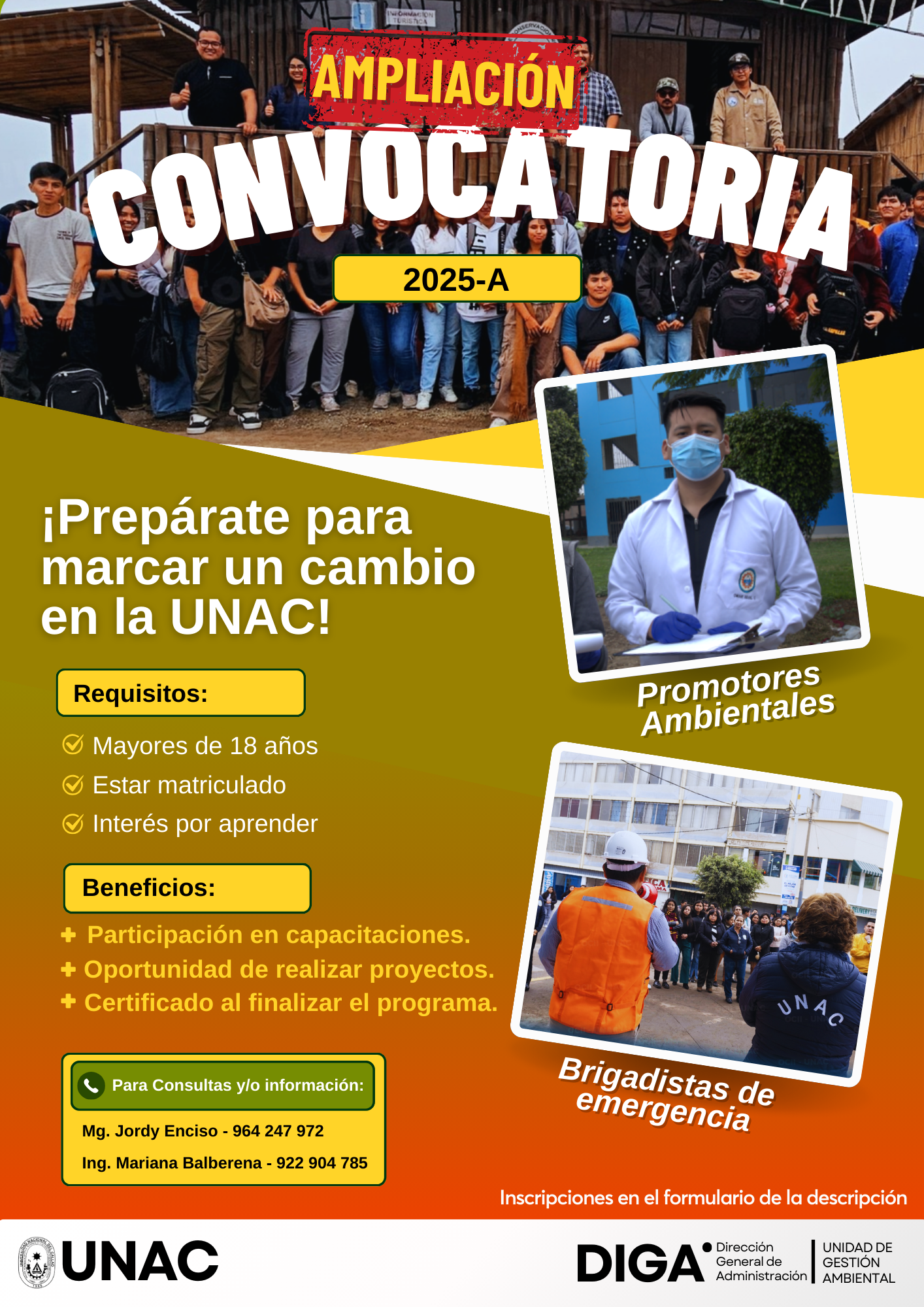 La Unidad de Gestión Ambiental de la Dirección General de Administración informa que se ha ampliado el plazo de inscripción para la Convocatoria 2025 de Promotores Ambientales y Brigadistas de Emergencia. La nueva fecha límite para postular es el: