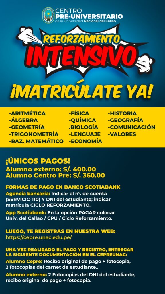 Posted on 3 de junio de 2025 Relaciones Públicas UNAC Noticias Centro Pre-Universitario (REFORZAMIENTO INTENSIVO)