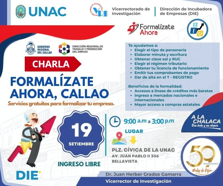 • CHARLA: Formalízate ahora, Callao. (Servicios gratuitos para formalizar tu empresa).