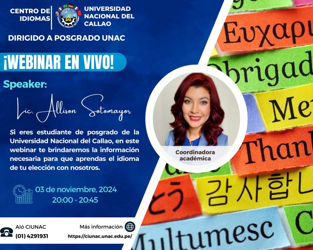 Posted on 25 de octubre de 2024 Relaciones Públicas UNAC Noticias CIUNAC: Webinar en vivo para estudiantes de posgrado de la UNAC