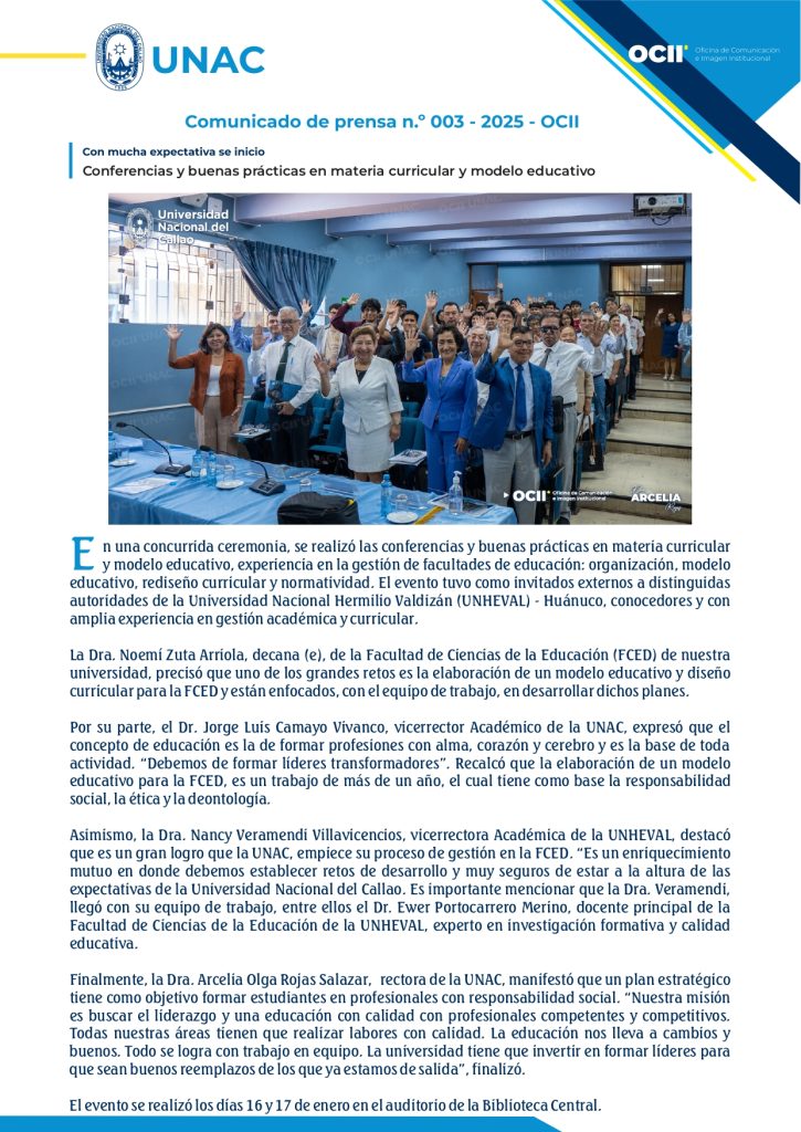• Comunicado de prensa n° 003 – 2025 – OCII