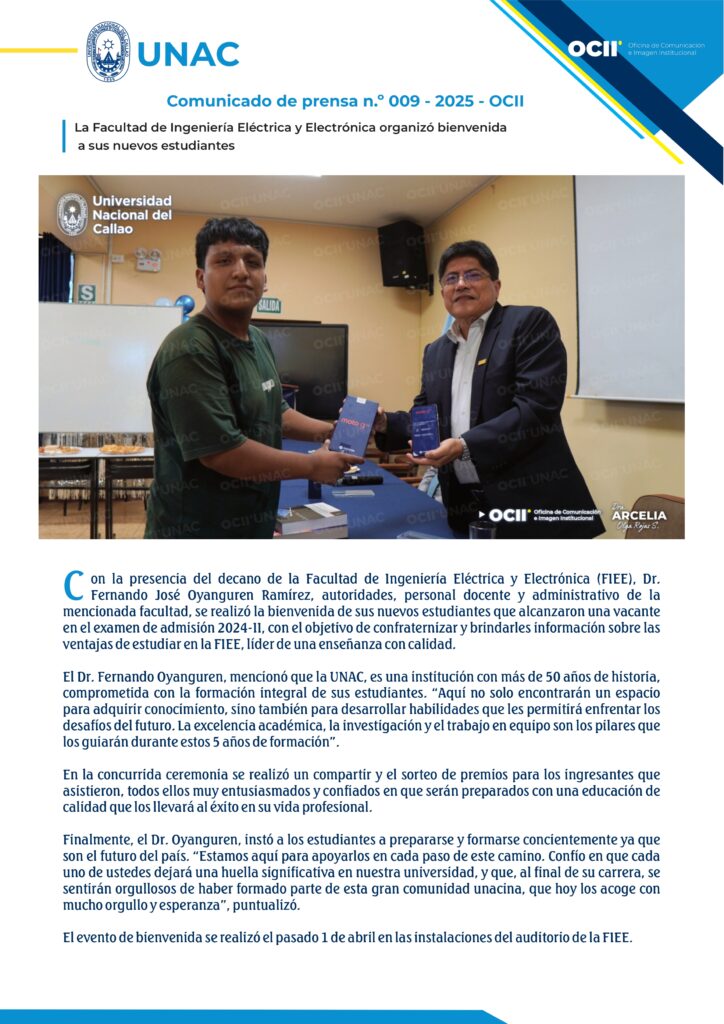 Posted on 3 de abril de 2025 Relaciones Públicas UNAC Noticias Comunicado de prensa N°009 – 2025 – OCII