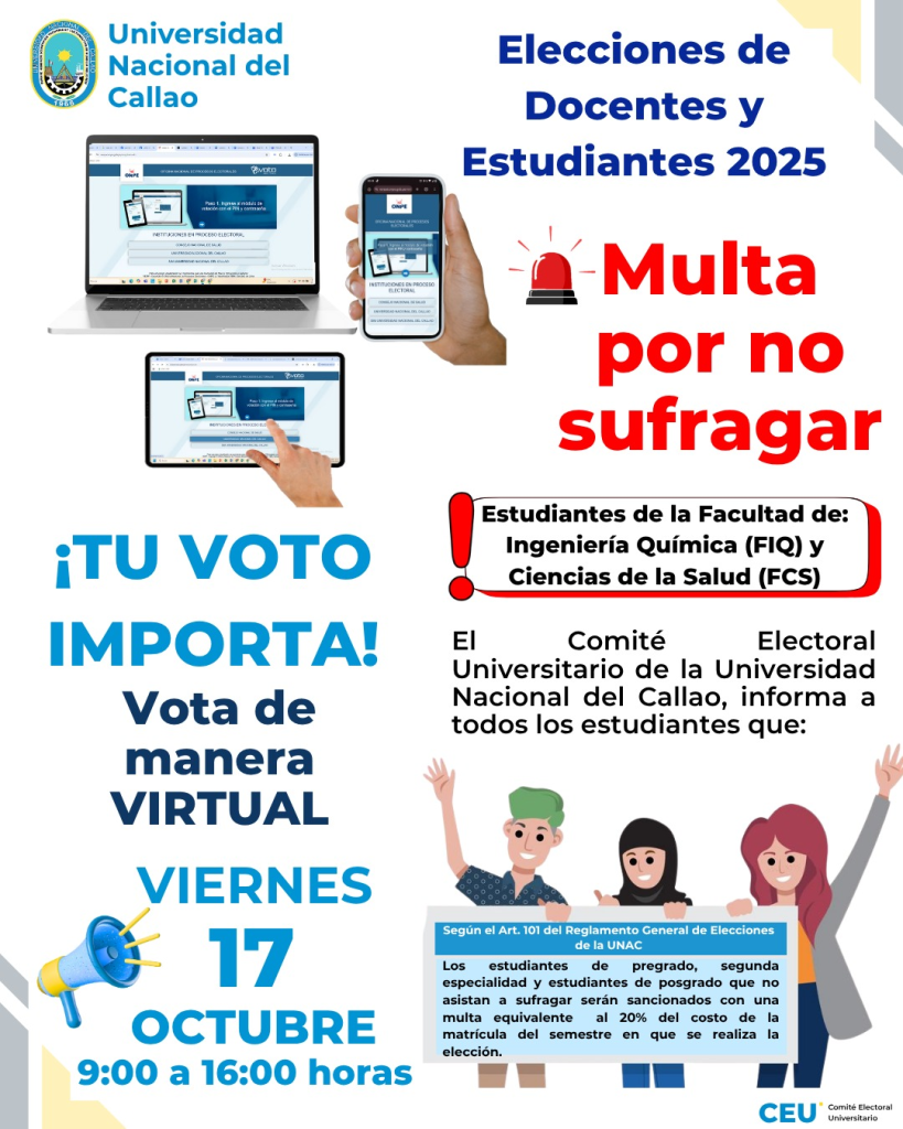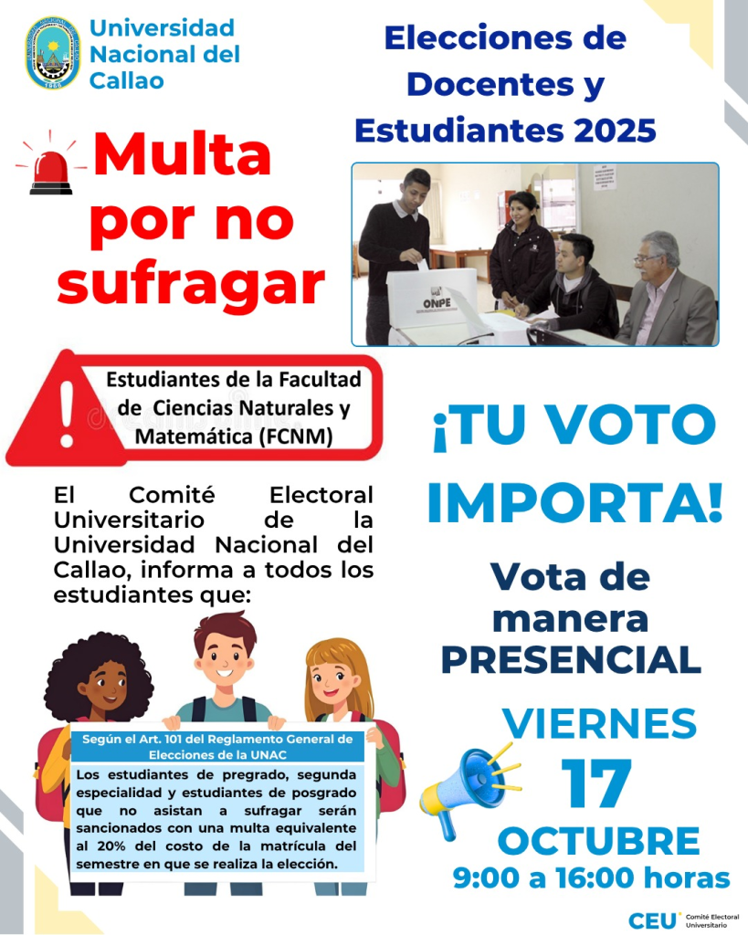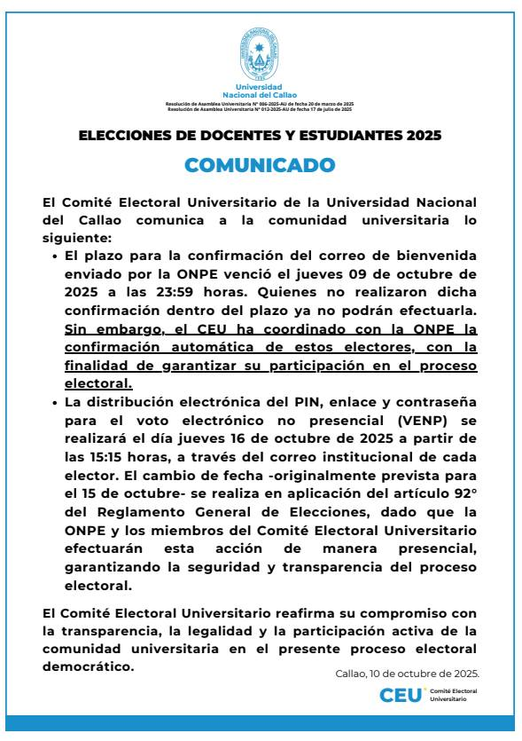Posted on 13 de octubre de 2025 Relaciones Públicas UNAC Noticias Comunicado: Elecciones de docentes y estudiantes 2025.