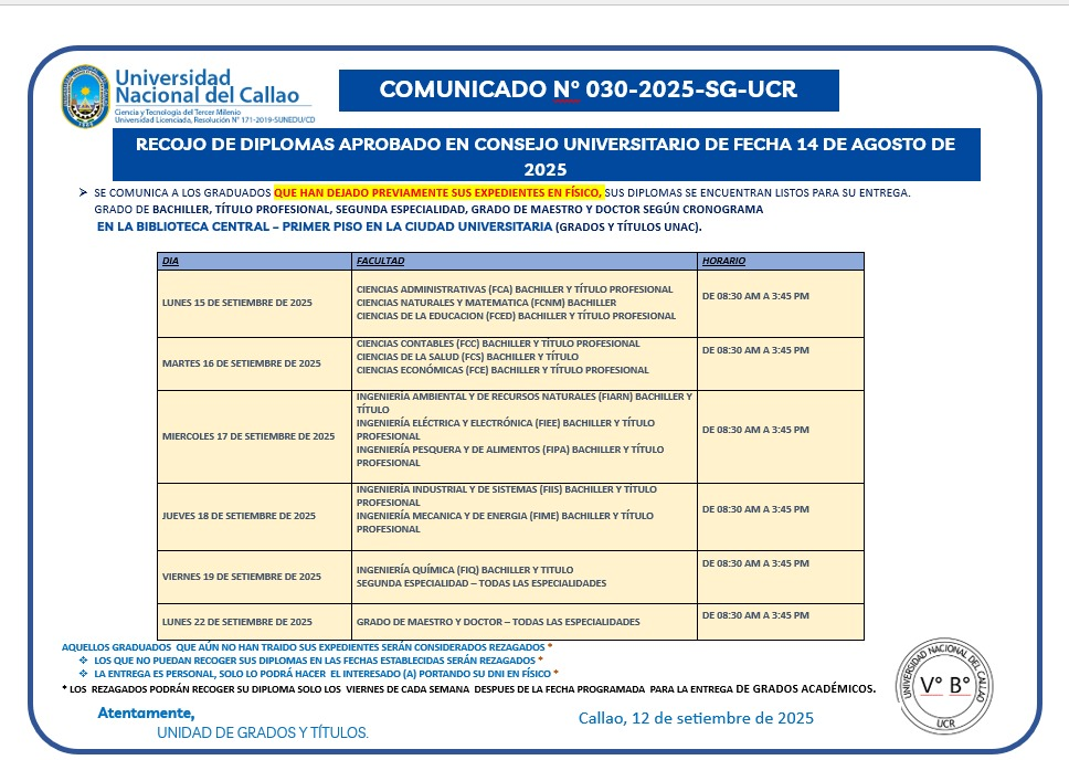 • COMUNICADO N° 030-2025-SG-UCR (RECOJO DE DIPLOMAS APROBADO EN CONSEJO UNIVERSITARIO DE FECHA 14 DE AGOSTO DE 2025)