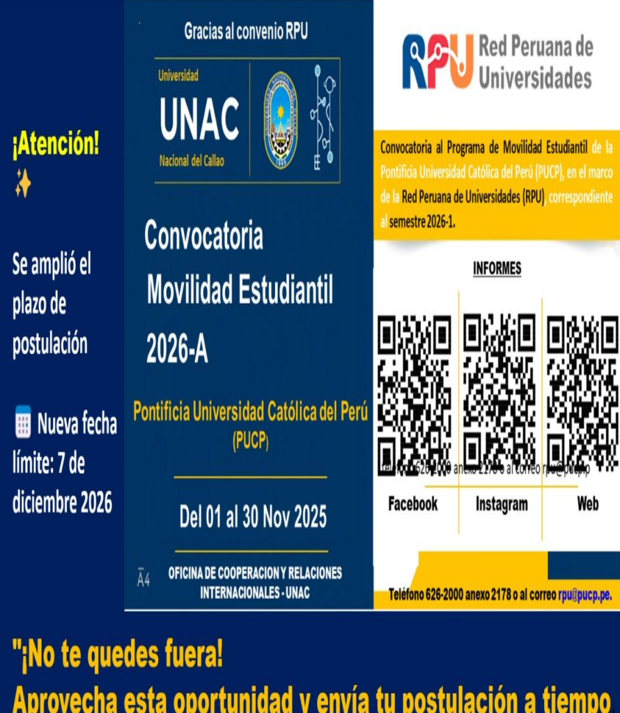 Posted on 4 de diciembre de 2025 Relaciones Públicas UNAC Noticias Convocatoria Movilidad Estudiantil 2026 – A