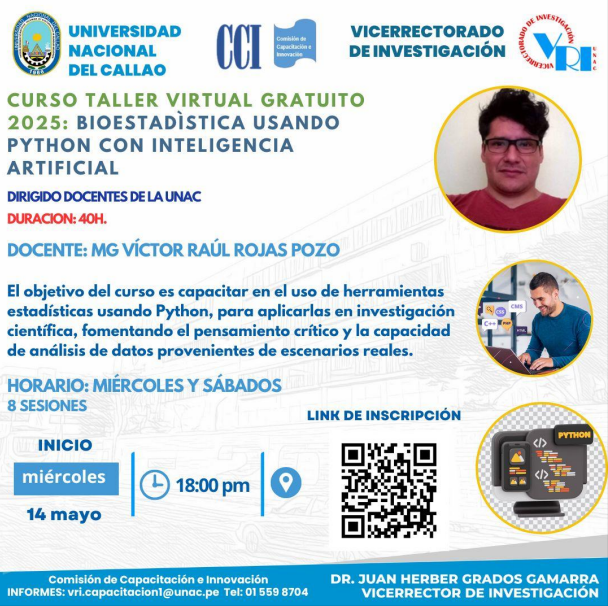 Curso taller virtual gratuito 2025: Bioestadística usando Python con inteligencia artificial.