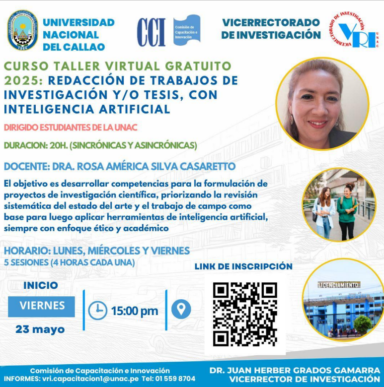 Curso taller virtual Redacción de Tesis, utilizando la Inteligencia Artificial, dirigido a estudiantes de la UNAC