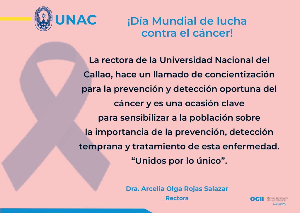 Posted on 4 de febrero de 2025 Relaciones Públicas UNAC Noticias ¡Día Mundial de lucha contra el cáncer!