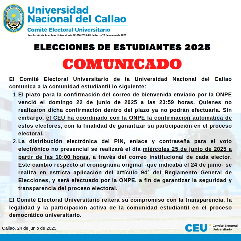 ELECCIONES DE ESTUDIANTES 2025 – COMUNICADO