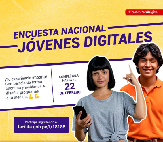 | La Secretaría de Gobierno y Transformación Digital de la PCM te invita a participar de la Encuesta Nacional Jóvenes Digitales.