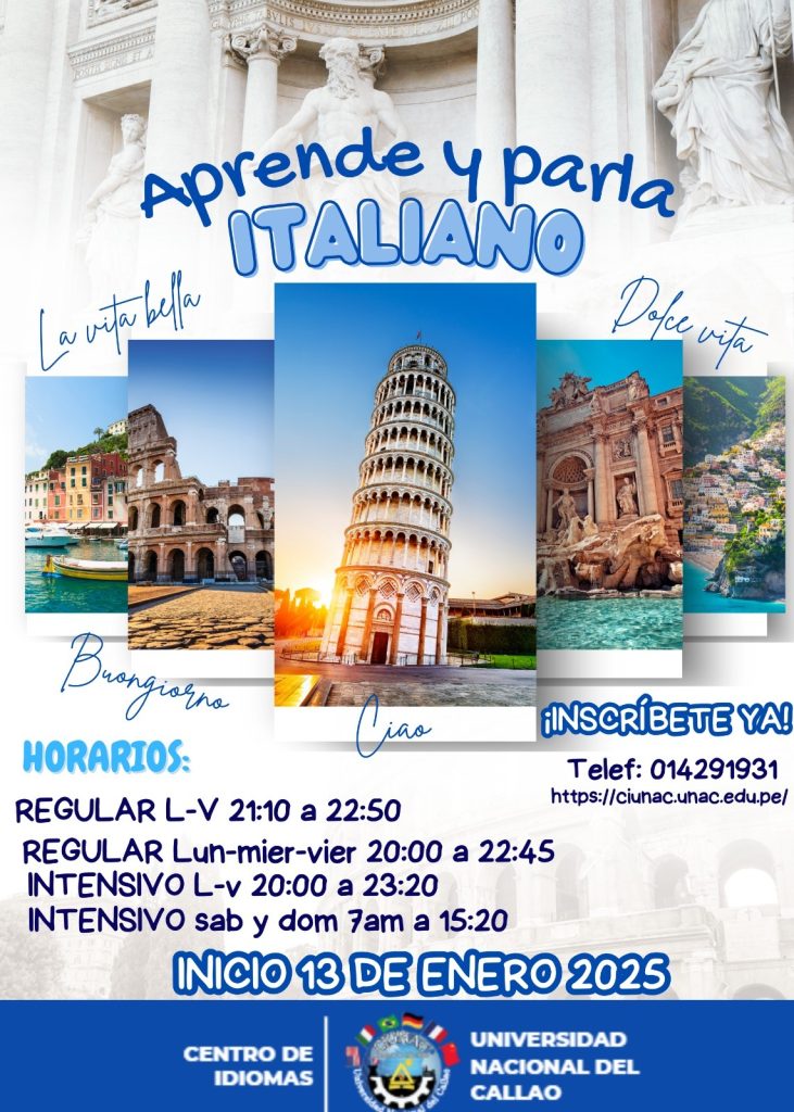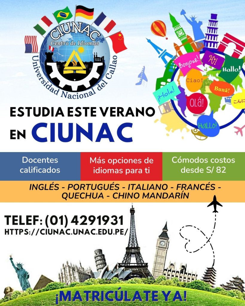 Posted on 6 de enero de 2025 Relaciones Públicas UNAC Noticias Estudia este verano en CIUNAC y aprende italiano, portugués, inglés, chino mandarín, francés, quechua