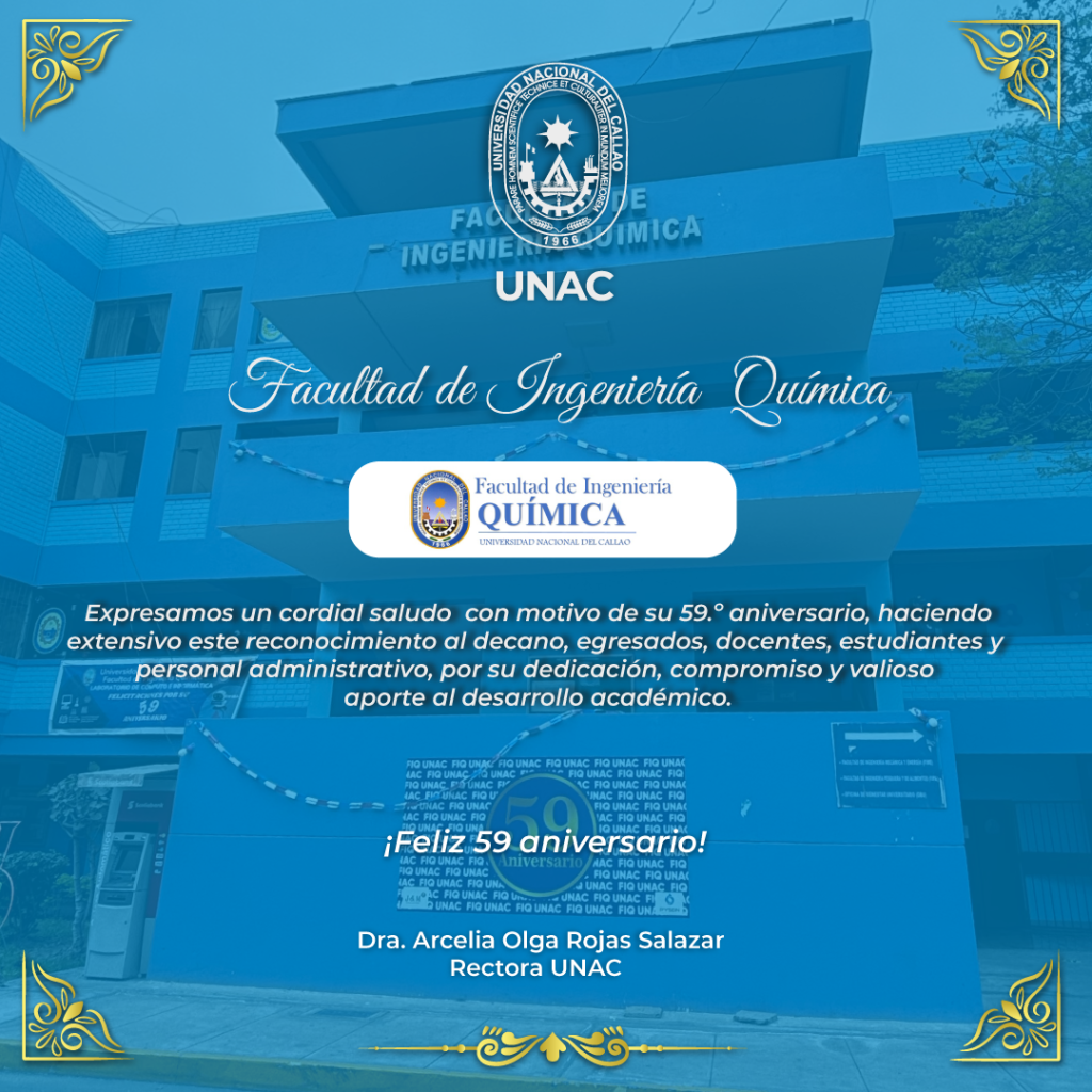 Posted on 27 de octubre de 2025 Relaciones Públicas UNAC Noticias Feliz 59.° aniversario, Facultad de Ingeniería Química.