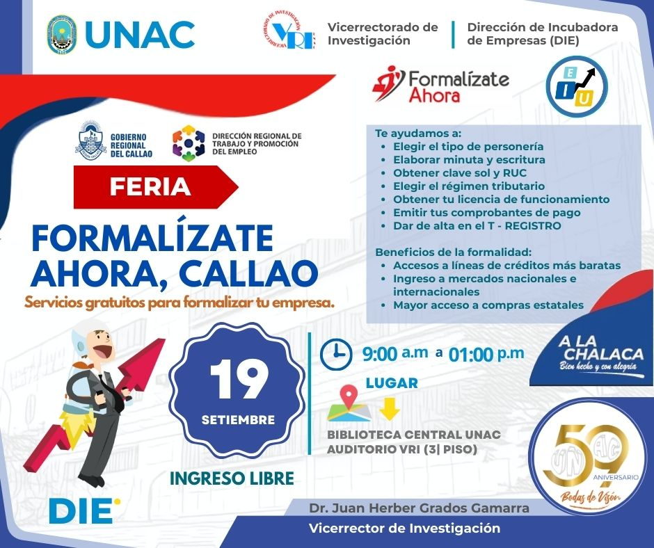 Posted on 15 de septiembre de 2025 Relaciones Públicas UNAC Noticias Feria: Formalízate ahora, Callao. (Servicios gratuitos para formalizar tu empresa)