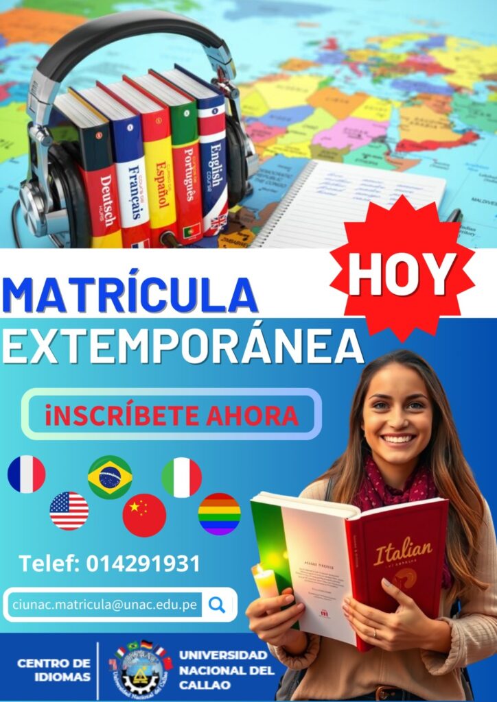 MATRICULA EXTEMPORÁNEA EN LOS IDIOMAS, QUECHUA, INGLÉS,PORTUGUÉS, ITALIANO Y CHINO MANDARÍN.