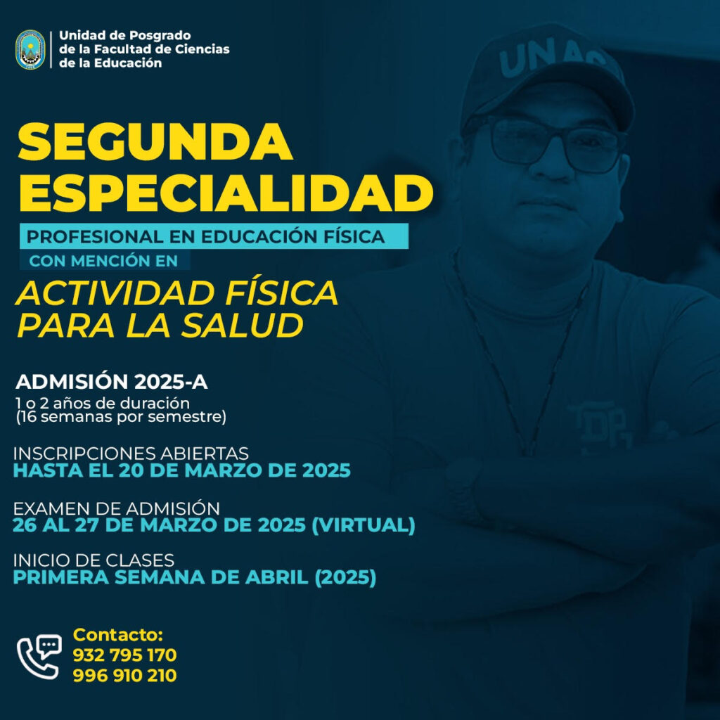 Segunda especialidad – Profesional en Educación Física con mención en Actividad física para la salud.