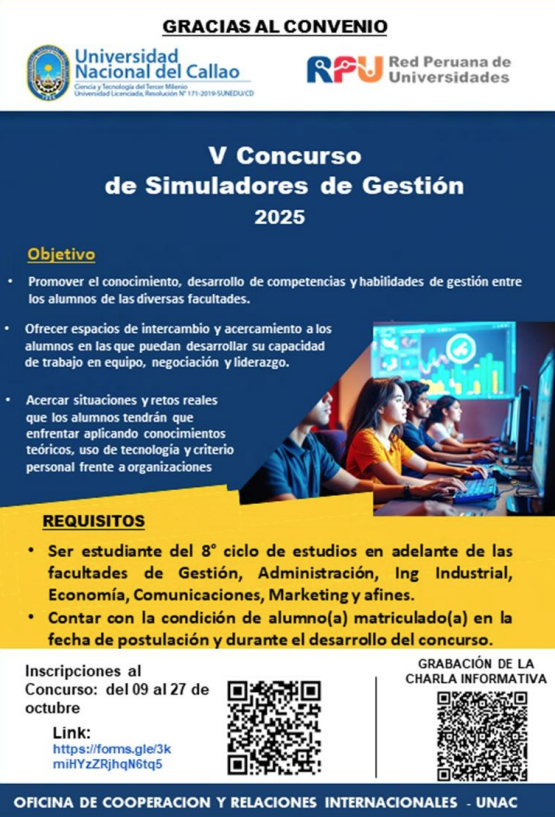 Posted on 16 de octubre de 2025 Relaciones Públicas UNAC Noticias V Concurso de Simuladores de Gestión 2025.