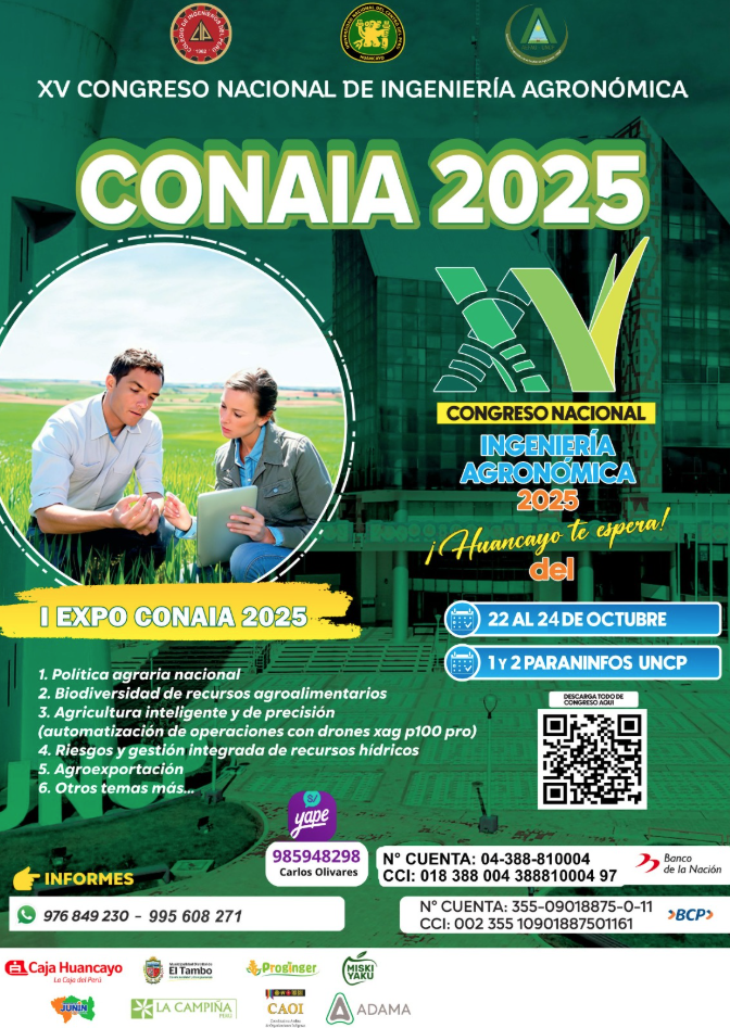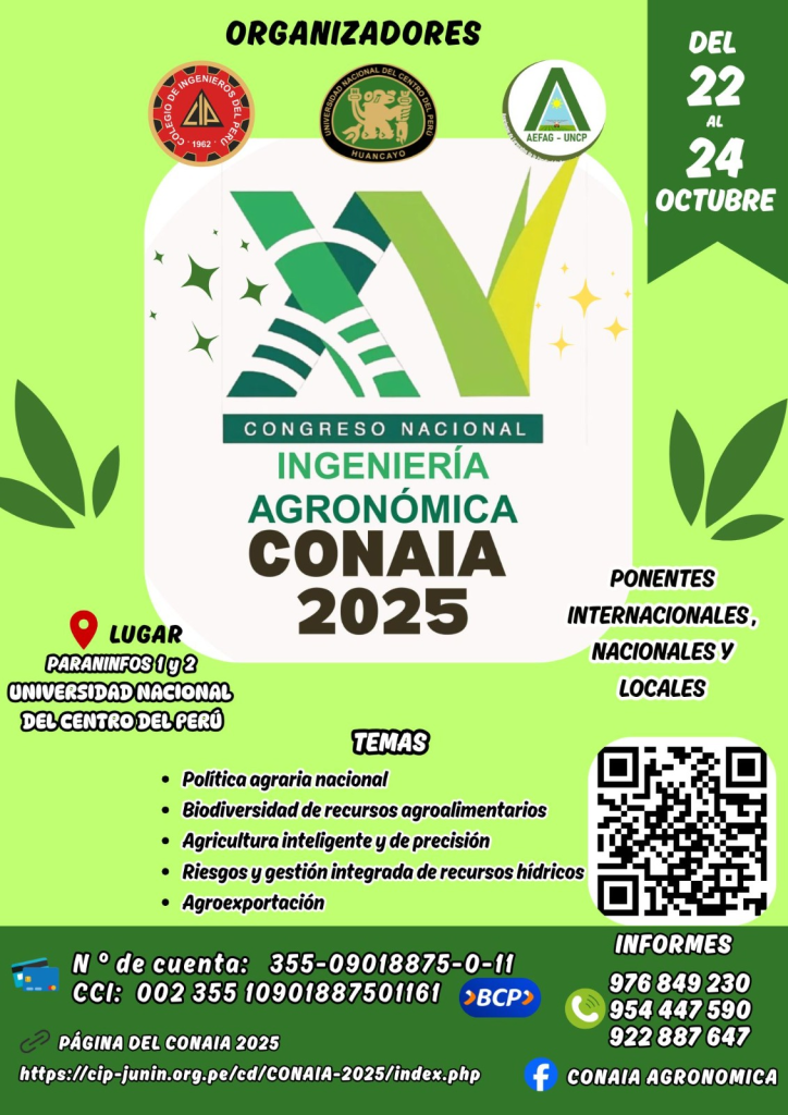 XV Congreso Nacional de Ingeniería Agronómica invita a participar a profesionales en Ingeniería Agronómica – CONAIA 2025.